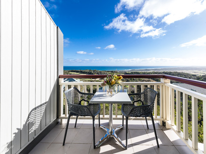 Located just a quick scenic walk or drive from the main building, these secluded hotel style rooms have sweeping views of Bass Strait, a conventional balcony, the comfort of either a king-size bed or two king singles, gourmet minibar, plush robes and slippers.