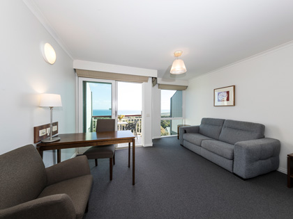 Ocean View Rooms at RACV Cape Schanck Resort, Mornington Peninsula, can accommodate three adults in one king bed or two singles, and one optional sofa bed which can be made available upon request.