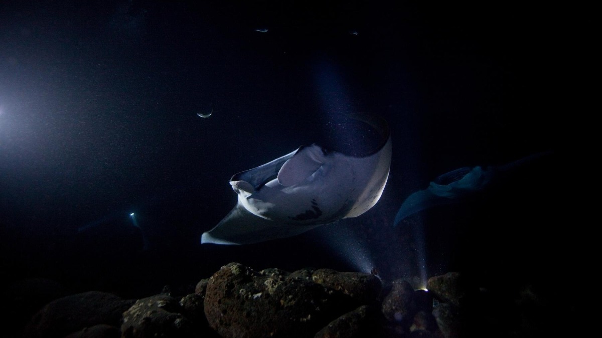 Night diving with the manta rays is a magical experience.
