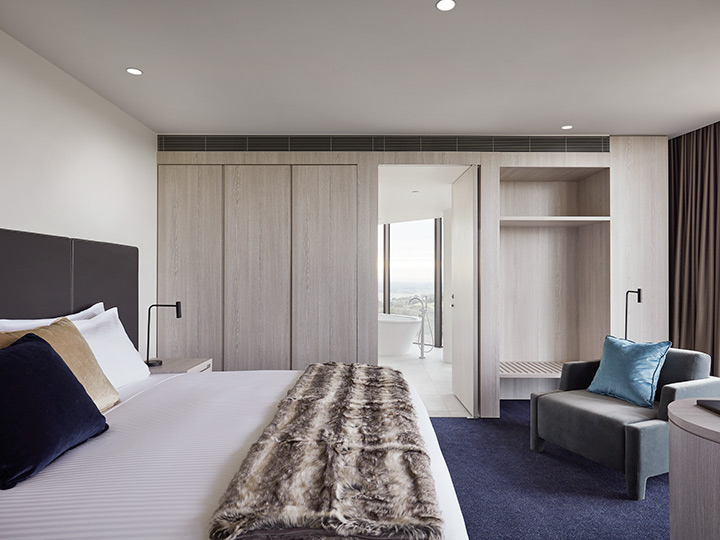 Our four bespoke Spa Suites, offer panoramic views of either our incredible golf course, Port Phillip Bay or Bass Strait. These designer suites have a deep soaking free standing spa bath, separate living and bedding spaces, an oversized 180 degree wrap around balcony, gourmet minibar, Nespresso coffee machine, plush robes, slippers and pillow menu.